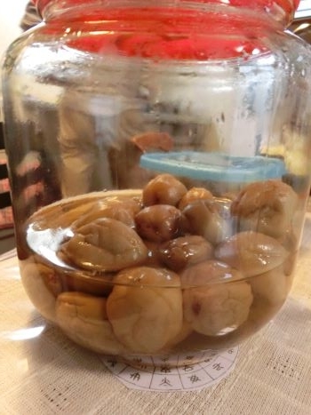 今日も晴天なので、お母ちゃんの塩漬け梅を天日干しにしました。で、上のが1日外で干した梅で、再び漬けてた梅酢に戻しました。元々多くなかったのですが、塩漬けにして更にちょっとになってしまいました。そして瓶の下にはフトマニ図が…。何かのエネルギーが入るそうで(??)梅干し僧侶大学生?の次男くんが、透明テーブルクロスの下にフトマニ図のコピーを入れてます…(;・∀・) これのおかげできっと美味しい梅干しができるのでしょう。。。(^-^;